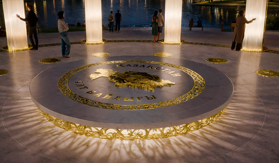 В центре — круглая структура диаметром 6 м, внутри которой «парит» золотое руно — метафора богатого культурного кода Грузии. Днём объект естественно вписывается в городской контекст, а ночью превращается в световое шоу с 110 специализированными LED-светильниками, где свет и движение создают динамическую картину, видимую издалека.
